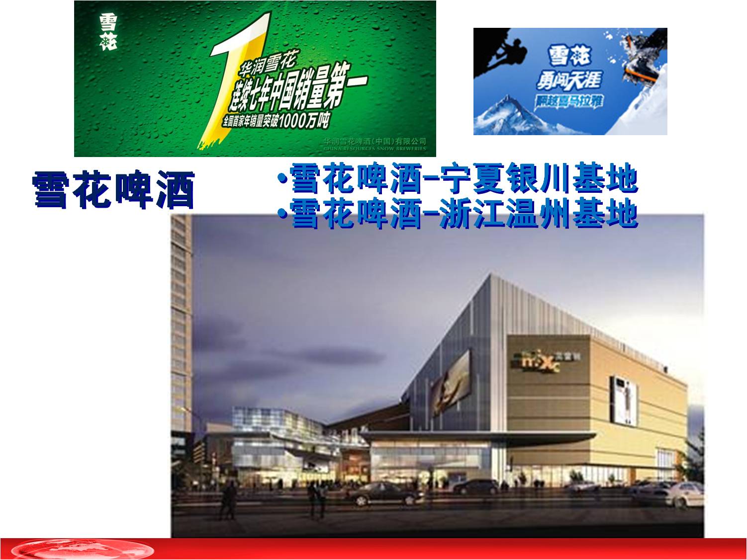 2004年12月9日 華潤雪花啤酒同浙江西泠啤酒有限公司共同投資組建華潤西泠(杭州)啤酒有限公司,此項目總投資預(yù)計需2.2億元人民幣,合營公司成立后,將新建年產(chǎn)10萬噸的能力規(guī)模; 終生產(chǎn)能力規(guī)模將擴至20萬噸。為公司下一步在杭州市場的發(fā)展奠定堅實的生產(chǎn)基礎(chǔ)。 2004年10月 華潤雪花啤酒全資收購原西藏自治區(qū)昌都雪源啤酒廠,成立華潤雪花啤酒(西藏)有限公司,華潤雪花啤酒在世界 高的地方建立了基地。